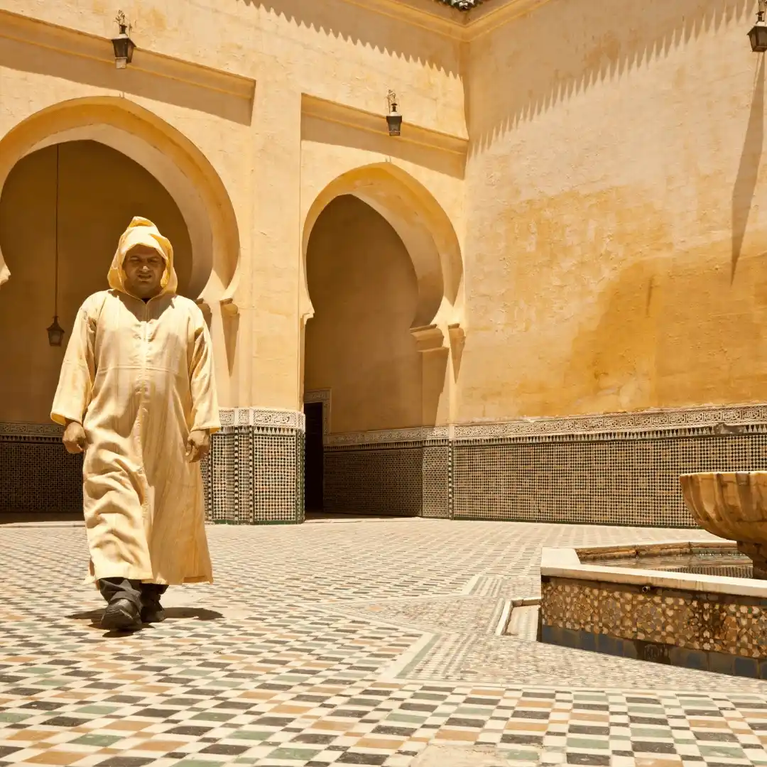 Full day in Fes with a guided exploration of the old Medina, one of the oldest living medieval cities in the world. Visit the famous tanneries, Nejjarine Museum, and traditional madrassas such as Al Attarine or Bou Inania. Walk through artisan quarters, pottery workshops, and historic streets. Enjoy a traditional lunch and free time in the evening.