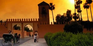 Visit Ouarzazate film studios and Ait Ben Haddou kasbah. Continue through the High Atlas Mountains via Tizi n’Tichka pass with panoramic views and mountain villages. Arrive in Marrakech in the afternoon, marking the end of the tour.