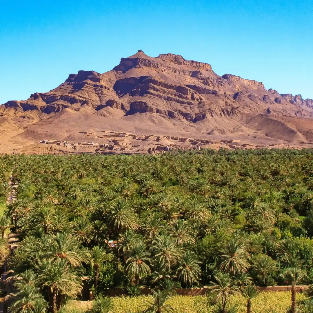 Travel through the High Atlas Mountains via Tizi n’Tichka pass. Visit Ait Ben Haddou before continuing through Draa Valley to Zagora for dinner and an overnight stay.