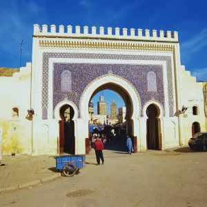 You spend the day exploring Fes with a local guide. You enter through Bab Boujeloud and walk into the old medina. You visit Al Qarawiyyin University, Bou Inania Madrasa, and the tanneries. You see traditional workshops for leather, ceramics, and textiles. Streets get narrow and crowded, part of the experience. Afternoon includes the royal palace gates and Mellah district. Overnight in Fes.