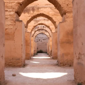 You leave Chefchaouen after breakfast and head inland. First stop at Volubilis. You walk through Roman ruins, mosaics, and ancient streets. Then you continue to Meknes. You visit Bab Mansour gate, Moulay Ismail mausoleum, and the old medina. After lunch, you drive to Fes. Stop at Merenid tombs for a panoramic view. Overnight in a riad.